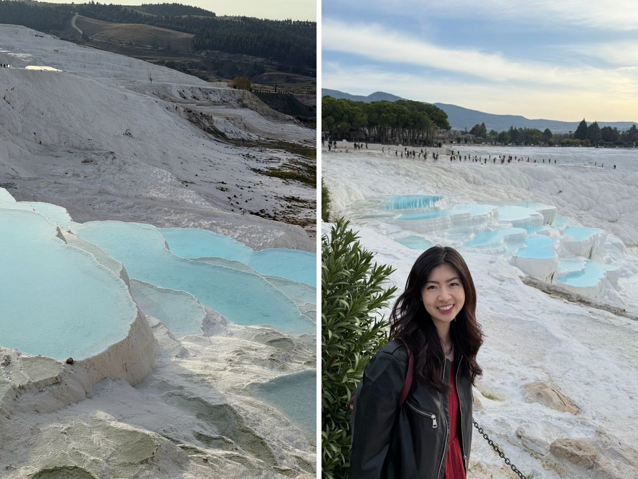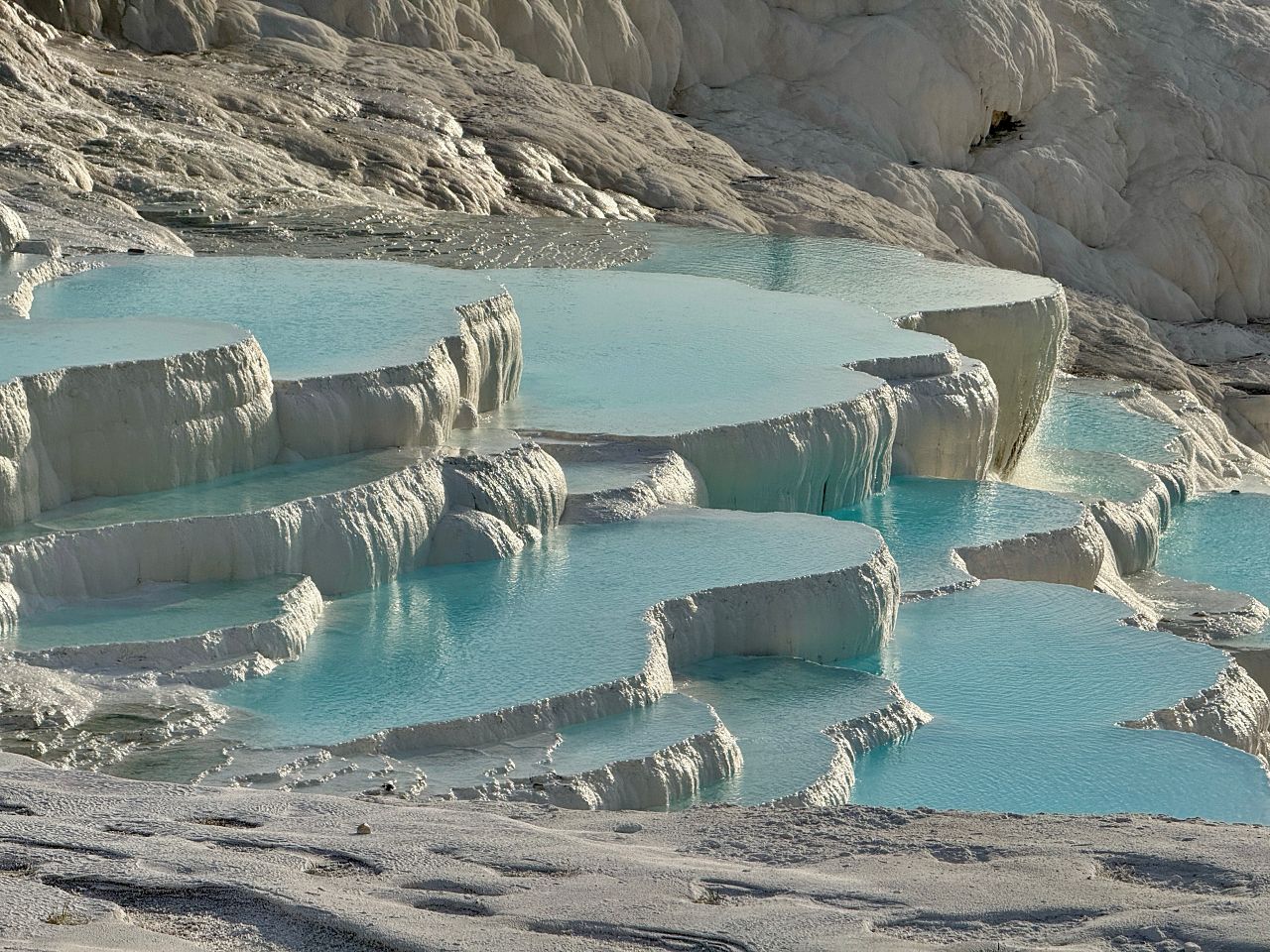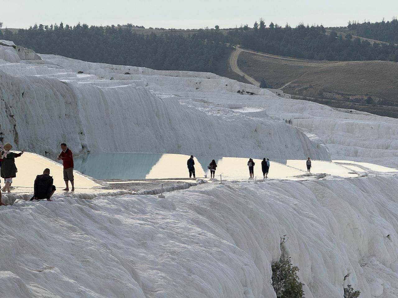第一次看到棉花堡時,真的會以為自己踏進了雪白的雲端!層層疊疊的石灰華梯田鋪滿山坡,視覺效果極度震撼。