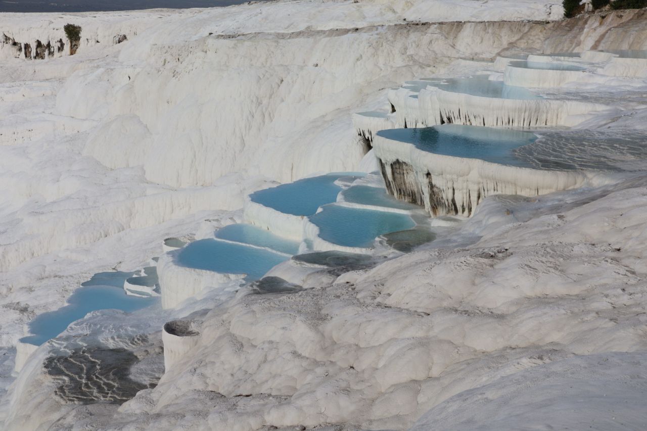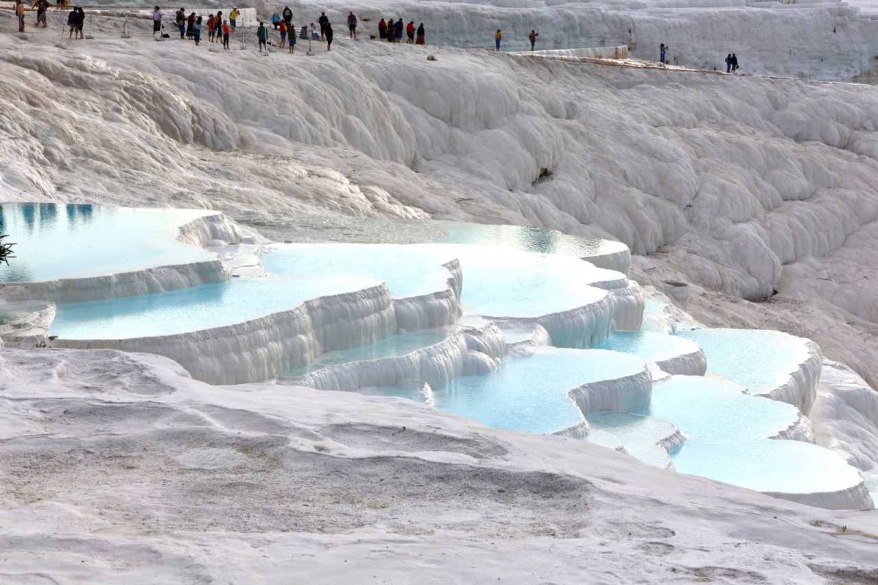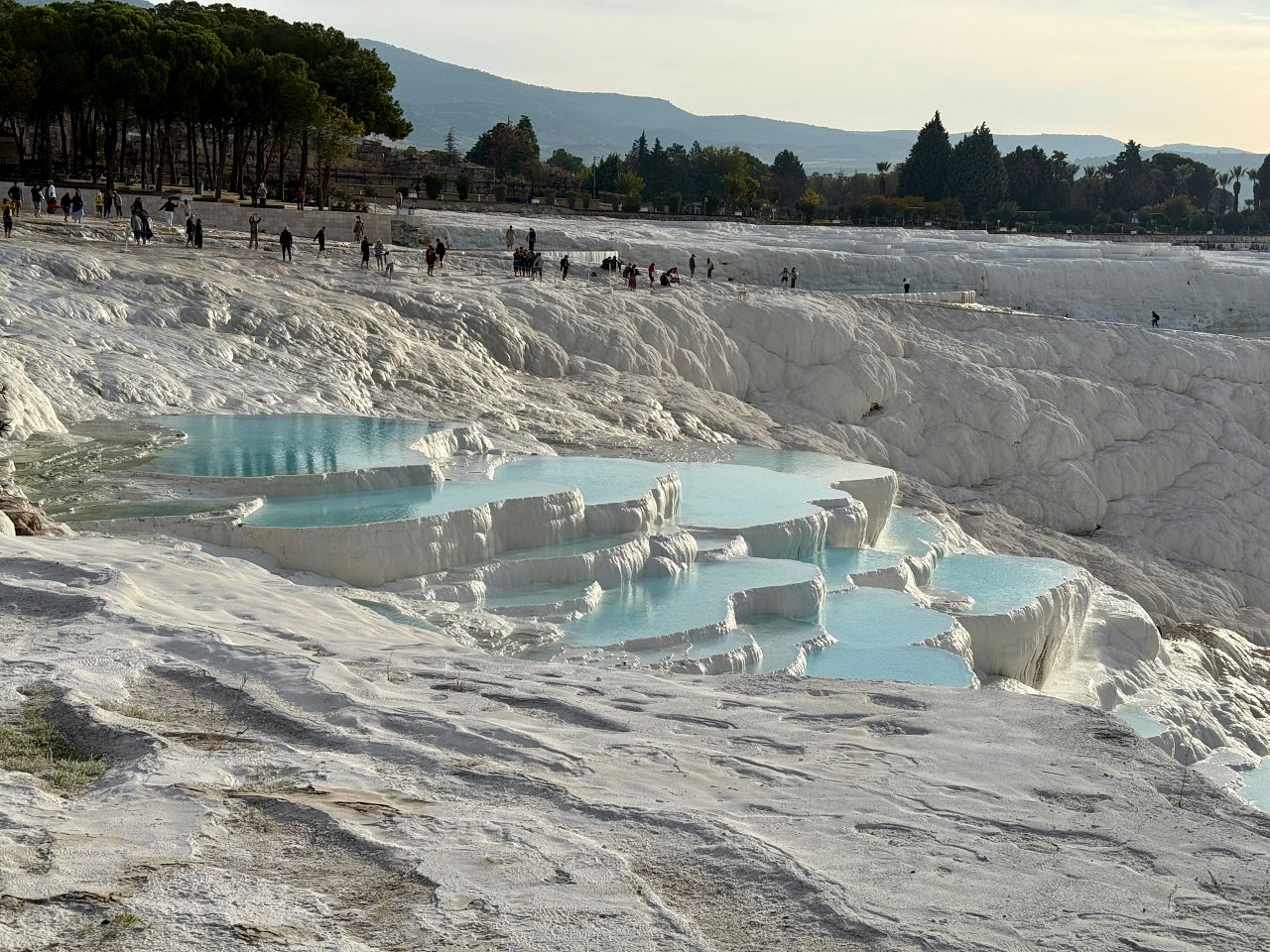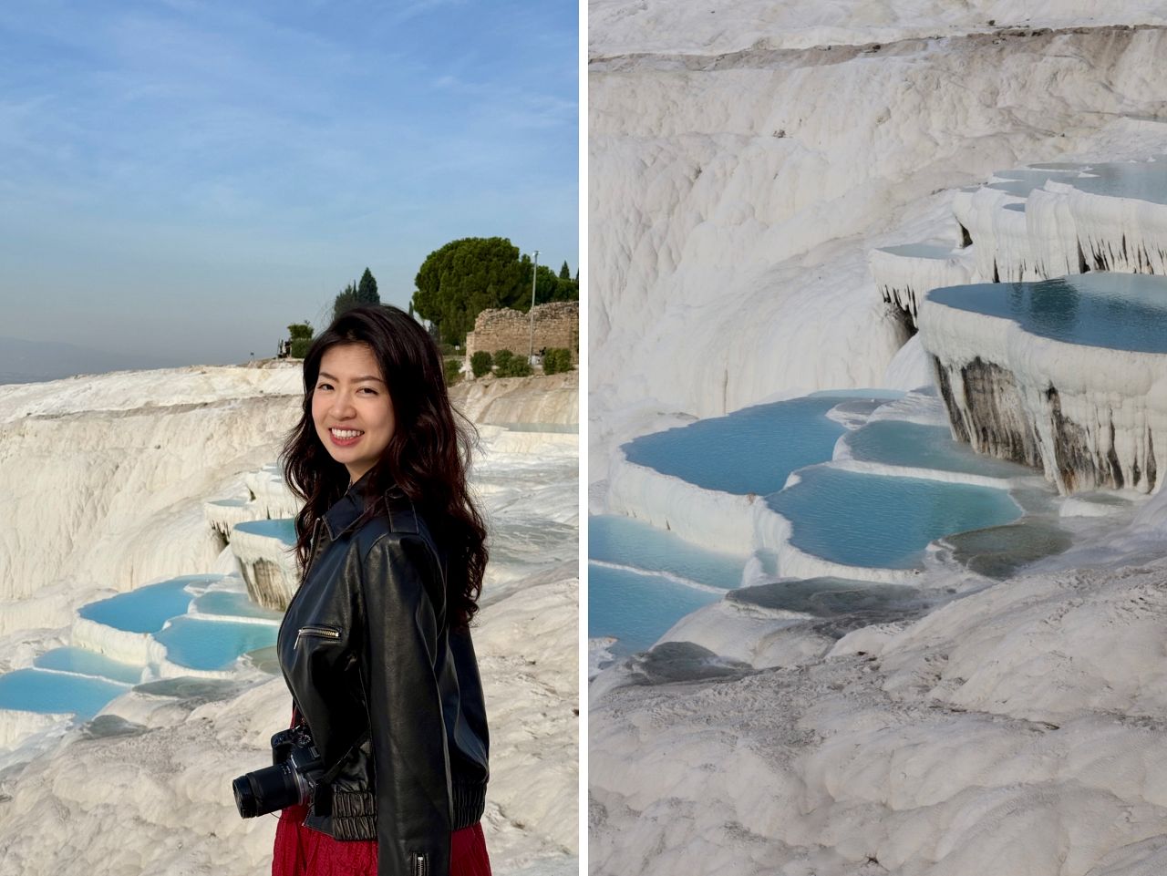 第一次看到棉花堡時,真的會以為自己踏進了雪白的雲端!層層疊疊的石灰華梯田鋪滿山坡,視覺效果極度震撼。