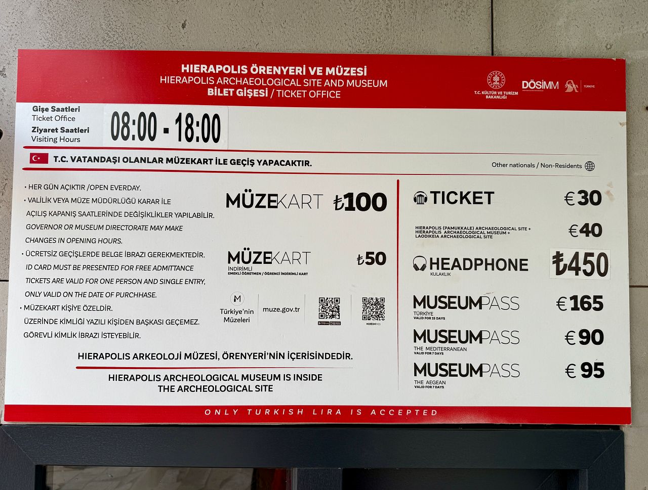 如果你有買土耳其博物館通票 (Museum Pass Turkey),棉花堡與希拉波利斯的門票都已包含在內,入場時直接刷卡即可,不需另外購票。