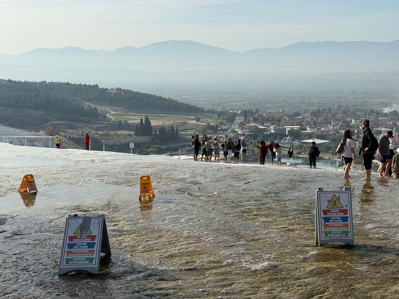 走在棉花堡裡的心情其實有種奇妙的矛盾:石灰岩表面粗糙、腳真的很痛,但水溫又舒服得讓人放鬆;眼前的景象美得不真實。即使有些階梯因為乾乾的而少了些夢幻感,整片自然奇景仍然壯觀得讓人驚嘆。